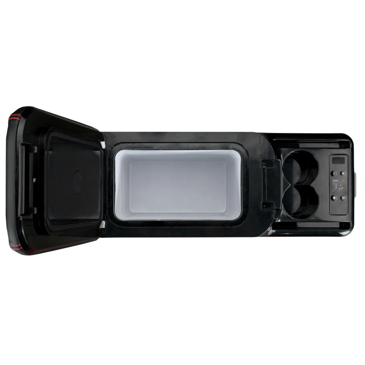 Complete with cup holders, USB charge ports, digital display and leather fridge lid, this armrest fridge makes an ideal accessory for drivers.ย