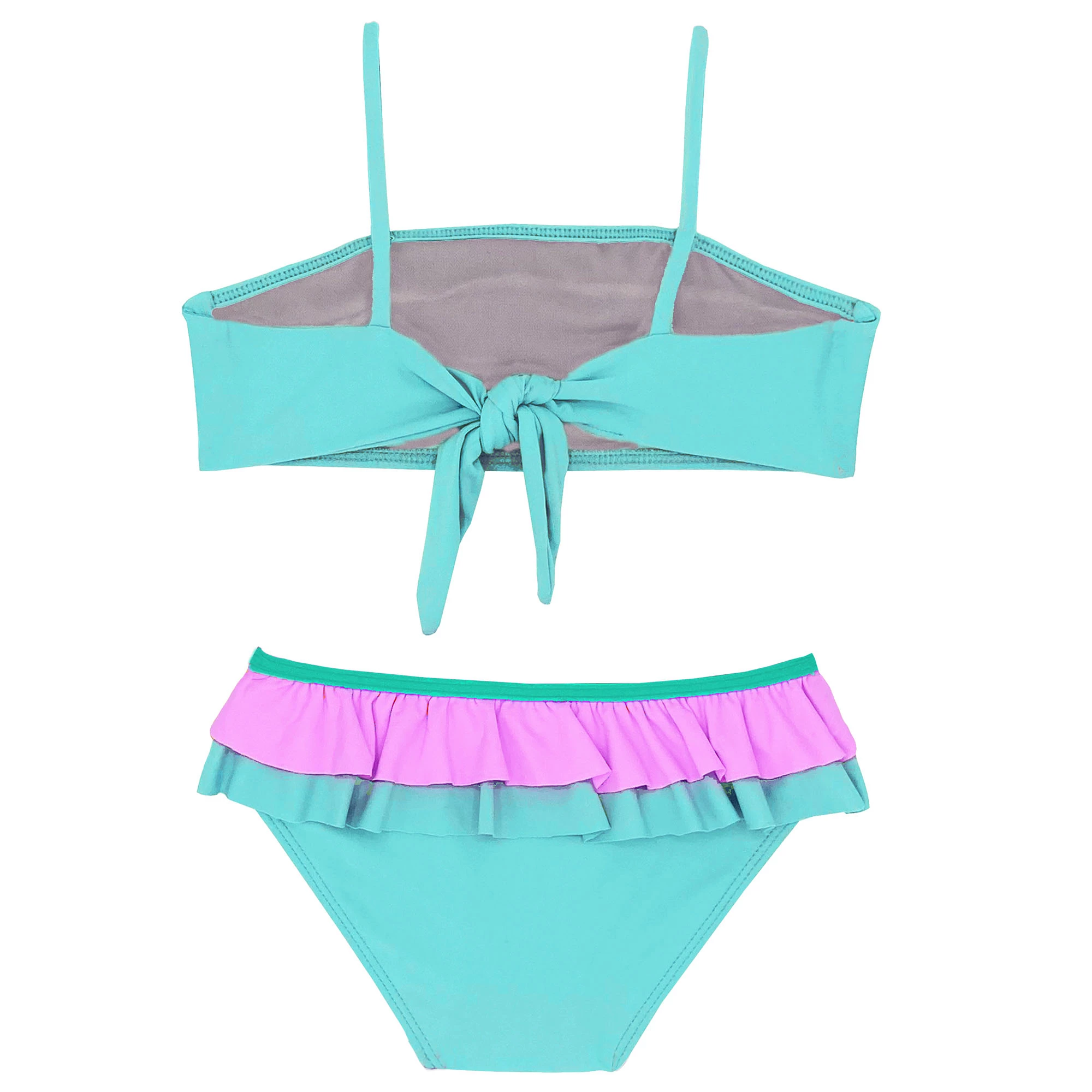 The Beach Lingo Toddler Girl’s Sunsets Ruffle Bra Set has the perfect look and feel for this summer. Your little princess will love the multicolored ruffled bikini top with matching bottoms. The set features a tie closure at the back and over the shoulder straps with beautiful, ruffled details. The Beach Lingo Toddler Girl’s Sunsets Ruffle Bra Set will become your princess’ favorite!