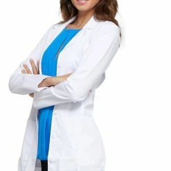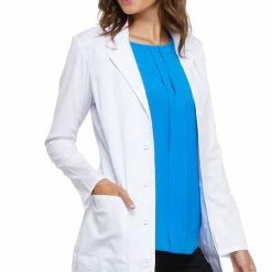You’ll look sharp in this stretch lab coat from Core Stretch by Cherokee Workwear. The 4439 has a notched collar. There are patch pockets with an instrument loop over the left pocket. This jacket has a flattering shape thanks to front and back princess seams. There’s also a back belt.