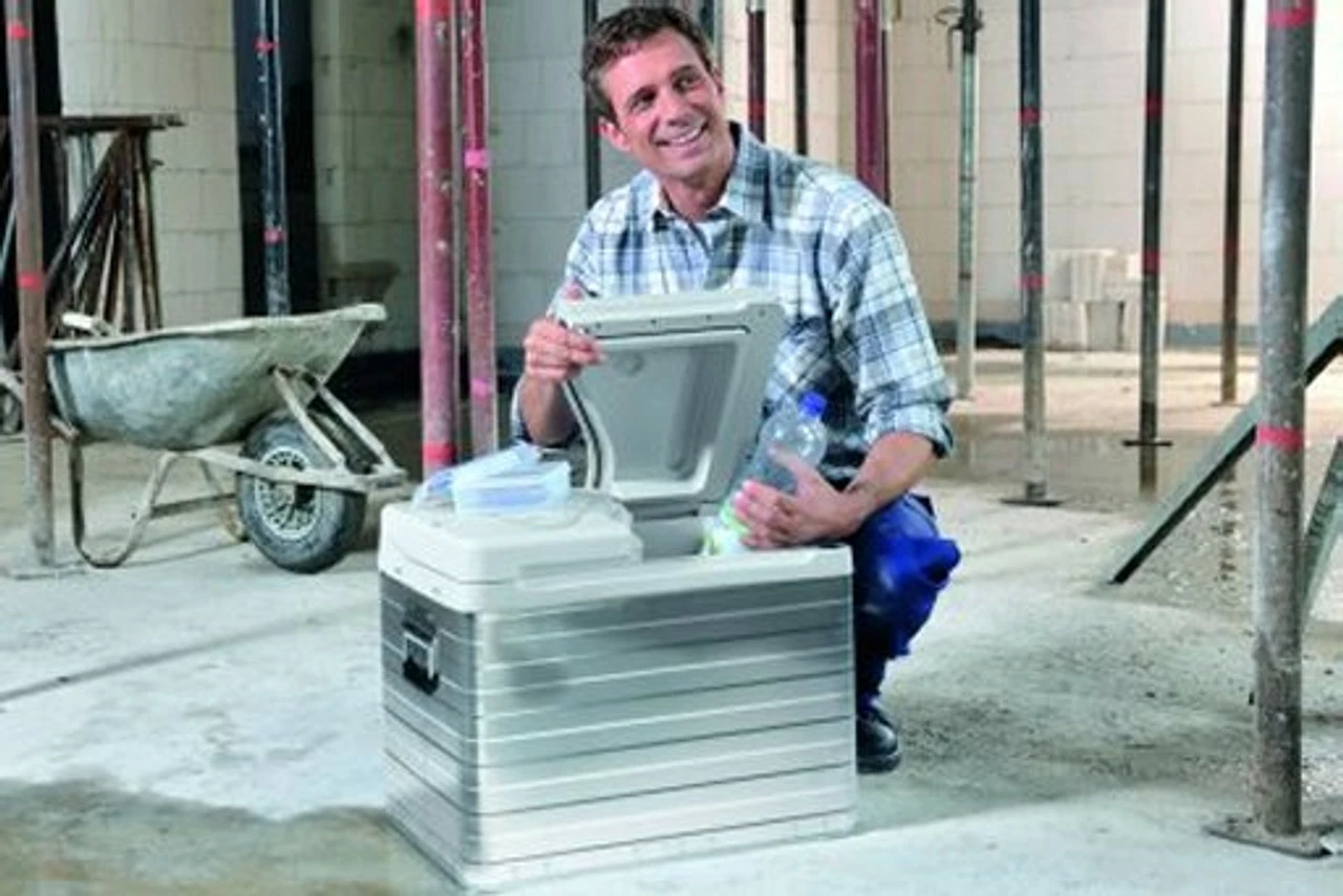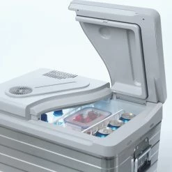 The Aluminium outer casing of the Waeco Mobicool Q40 Cool Box helps the cooler to achieve cooling down to 22ยฐC below ambient temperature and assists with insulation within the box, keeping the cold in and any heat out.