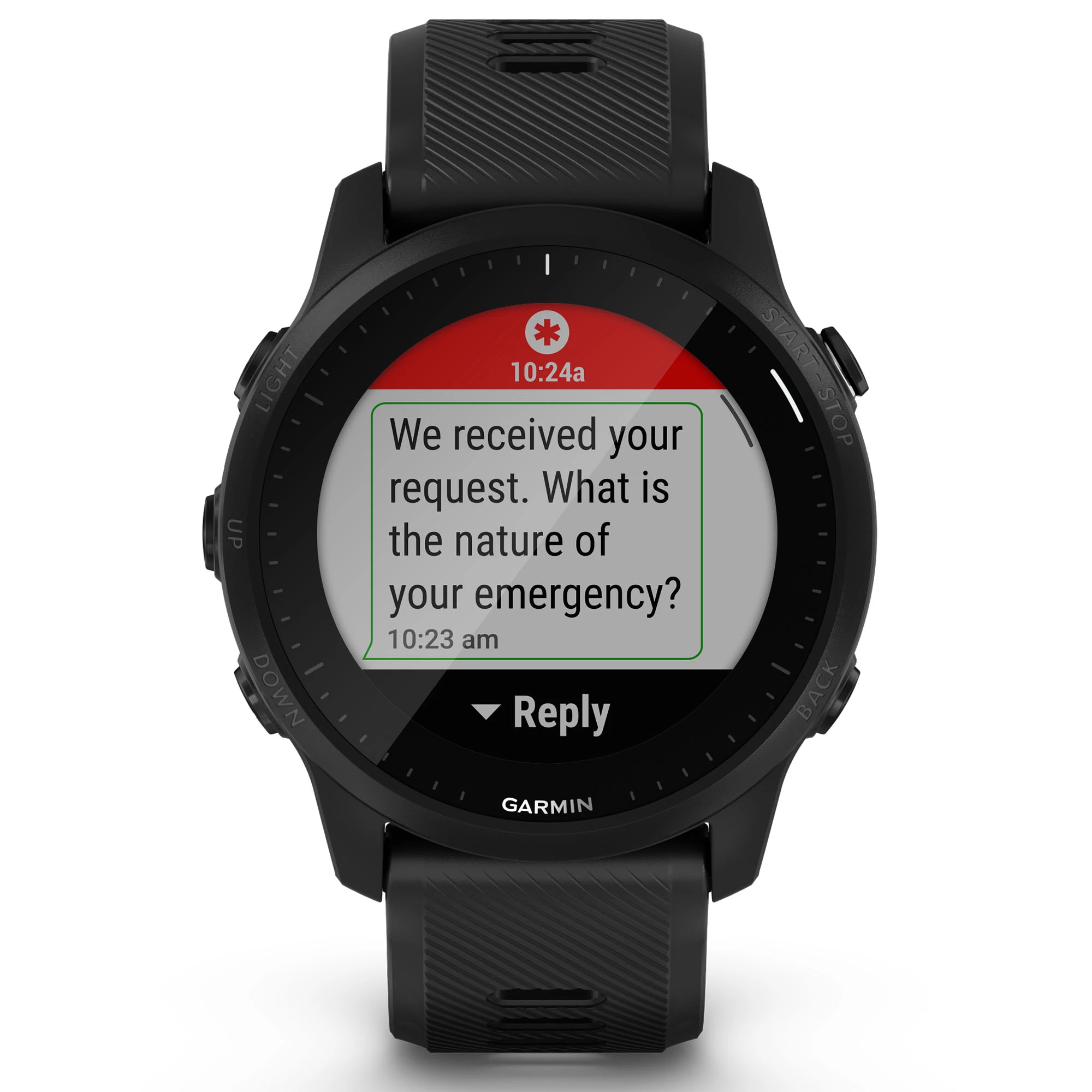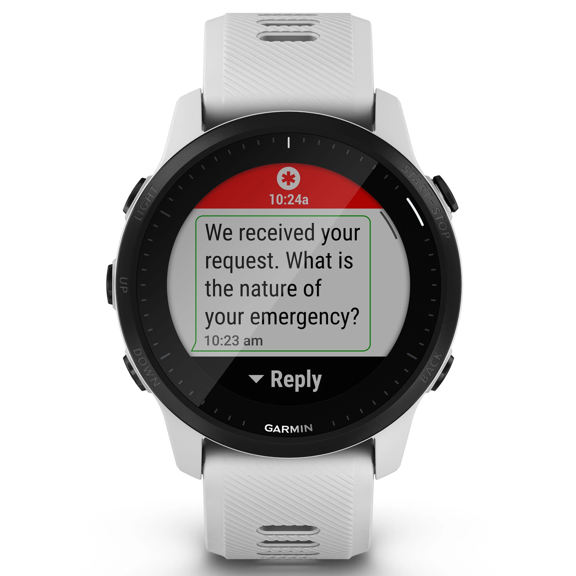 The Garmin Forerunner® 945 LTE GPS Smartwatch gives you the option to leave your phone at home as its LTE connectivity has you covered. It is built with a high-performance silicone band and durable Corning® Gorilla® Glass DX lens that can handle just about anything, while still keeping a light weight and no extra bulk so you can fly past the competition. This LTE-connected smartwatch links you in fun ways to your family and friends while also provides peace of mind when you’re out training or competing. If you feel unsafe or if your watch senses that an incident occurred, it can send a message to your emergency contacts with your location information, plus it can automatically send your name and location to the Garmin IERCC, a 24/7 staffed professional emergency response coordination center that can contact and communicate with local emergency services. Use LiveTrack to let friends and family follow your real-time location and even view your entire preplanned course. Rest assured that your loved ones know exactly where you’re running or riding and get midrace motivation with audio and text messages from your family and friends.