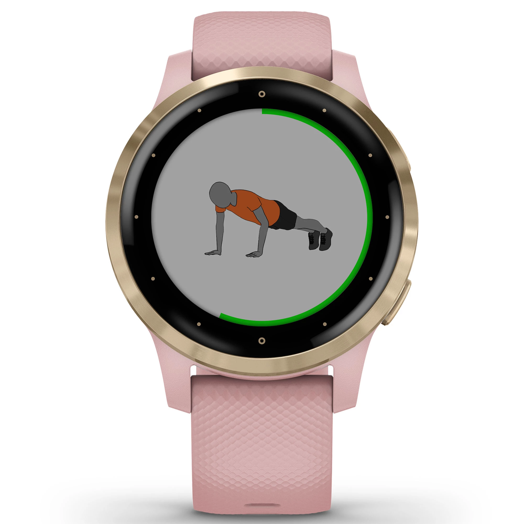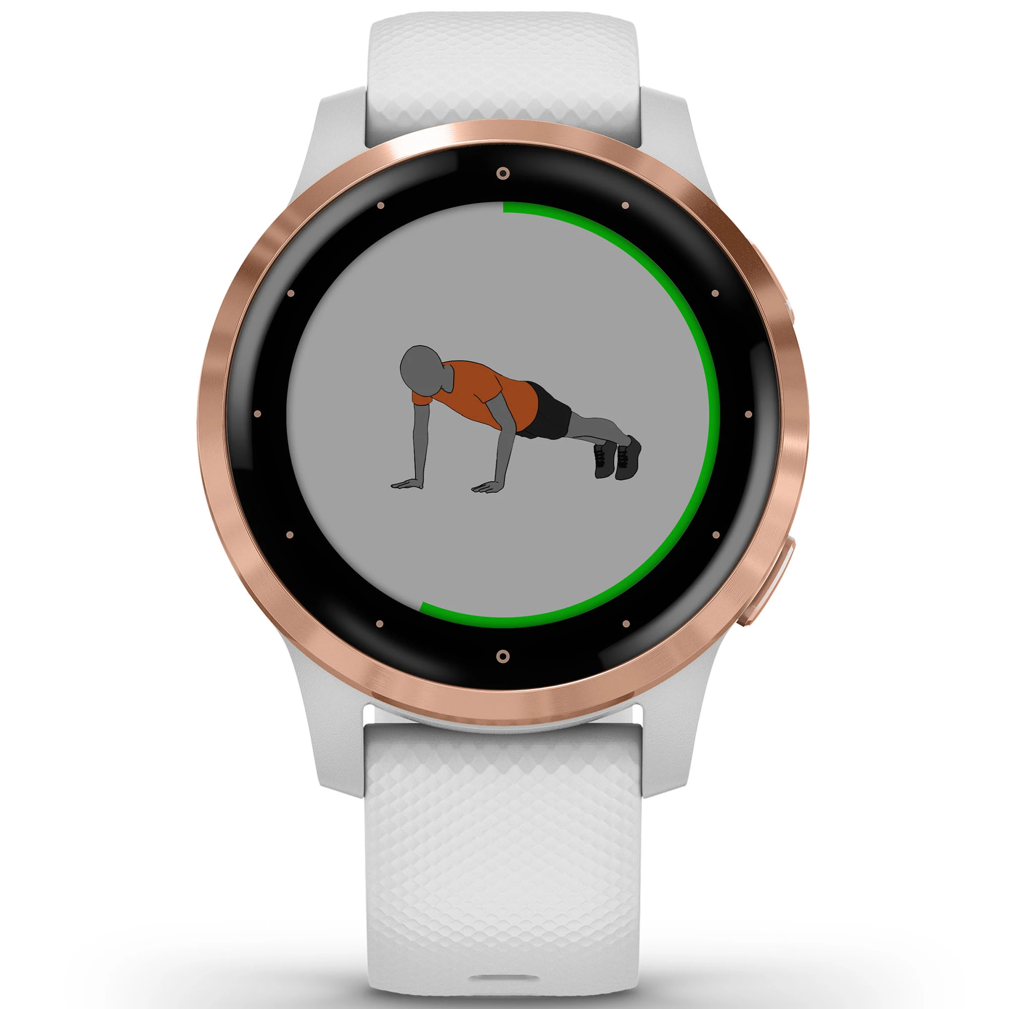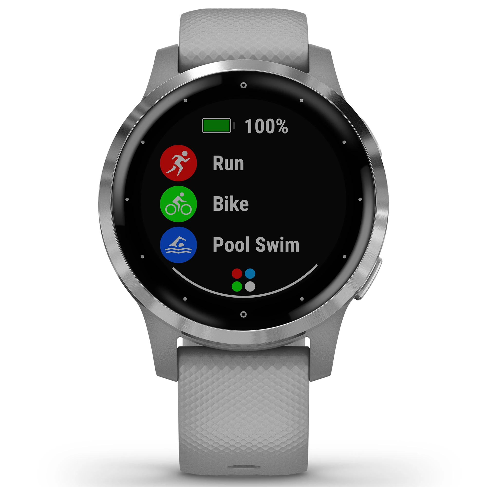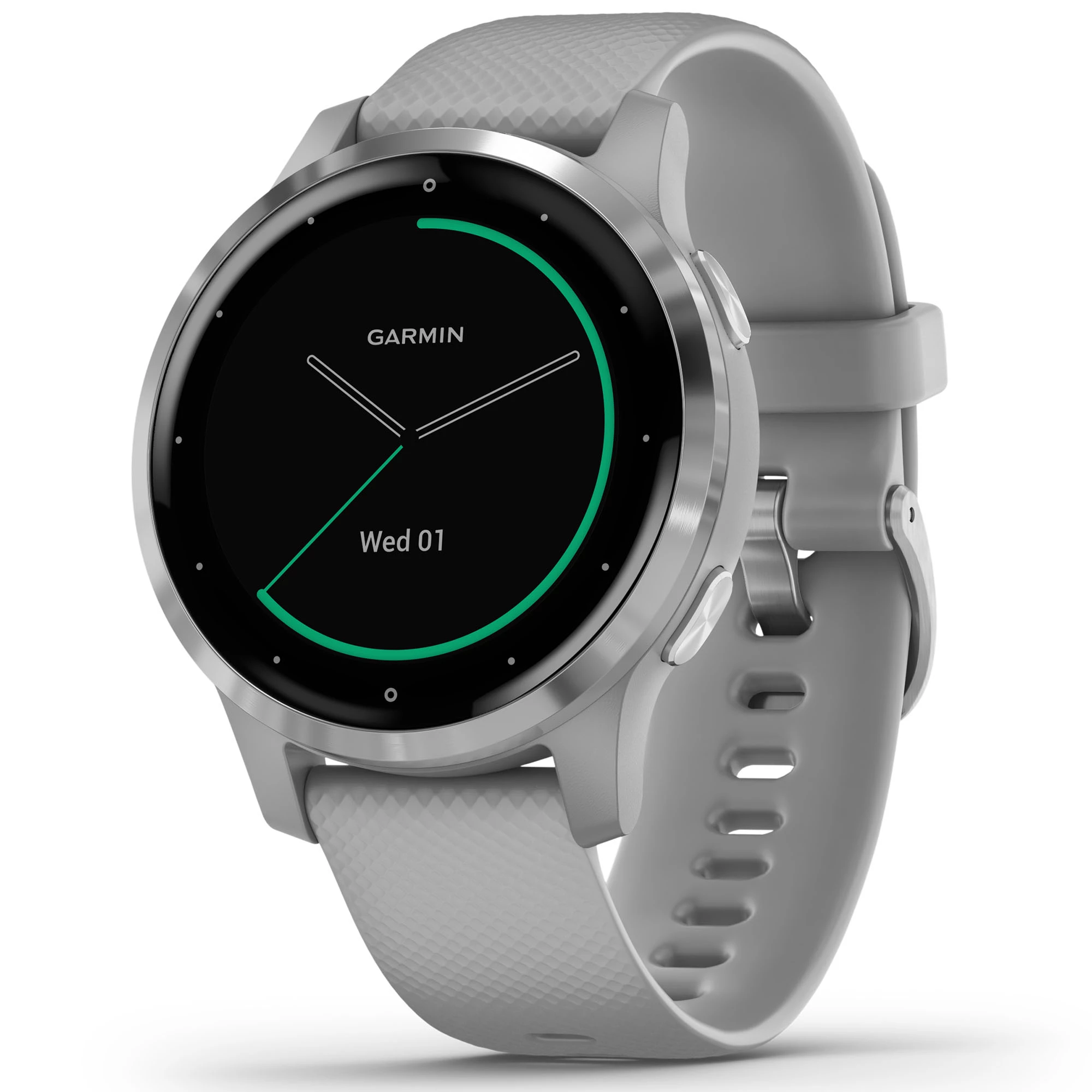 The Garmin vívoactive® 4S GPS Smartwatch offers multiple ways to track your health, performance and more to help you reach your health and fitness goals. This watch features the sunlight-readable Garmin Chroma Display™ technology which is housed under durable Corning® Gorilla® Glass 3 that is tough enough for you to go all in during your activities. This watch will help you keep track of your vitals and more thanks to its Body Battery™ Energy Monitoring which tracks your energy levels throughout the day so you can find the best times for activity and rest, as well as a Pulse OX Sensor that gauges your blood oxygen saturation during the day and as you sleep to show how well your body is absorbing oxygen. Keep track of your stress, hydration, respiration and sleeping patters thanks to its multiple sensors and the Garmin Connect™ app that will even help you track your menstrual cycle or pregnancy, offering symptoms logs as well as exercise and nutrition education and more. Track all the ways you move with more than 20 preloaded GPS and indoor sports apps, and step up your game with Garmin Coach which offers a personal running coach on your wrist, for free, to help you train for your next 5K, 10K or half-marathon. Get all your notifications so you can stay on top of your busy schedule and relax with your favorite music as this watch lets you download songs plus playlists from your Spotify®, Deezer or Amazon Music accounts. Stay on the move longer with a battery life that lasts up to 5 days in smartwatch mode and up to 5 hours in GPS mode with music while having the peace of mind that it is water-rated to 5 ATM, making it perfect for a swim, shower or spa day. Get the watch that matches all your lifestyle needs with the Garmin vívoactive® 4S GPS Smartwatch!