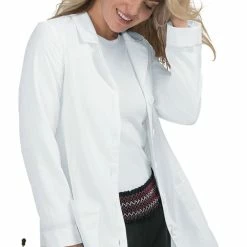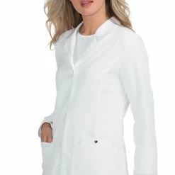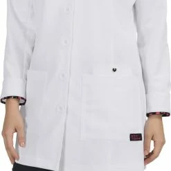 Feel ready to take on the world in the chic Betsey Johnson by koi Women’s Marigold Lab Coat. This fun, flirty lab coat lets you show off your personality with contrast cuff print detailing and a cheeky heart button-up cell phone pocket. Never settle for the ordinary, when you can sport the latest and greatest comfort stretch fabrics and fashion-forward fit.
