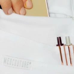 Take your workwear up a notch with the Med Couture Originals Women’s Performance Lab Coat. Silky stretch fabric and angled pockets make for a sleek look.