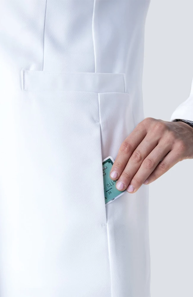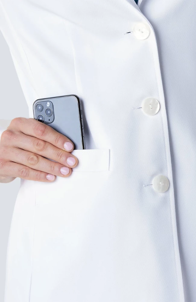 In a luxurious premium fabric, the Medelita Women’s J. Wright Slim Fit Lab Coat gives you the perfect balance of function and elegance. This durable and sophisticated lab coat has a feminine fit with design details that ensure range of motion.
