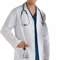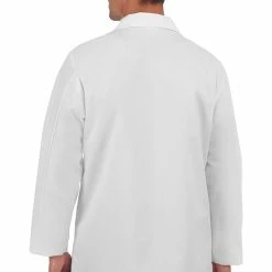 This classic men’s lab coat comes from META Labwear. It has a notched collar and set-in sleeves. There are two front patch pockets and a pencil stitch on the breast pocket. This lab coat has a one piece back. The fabric is a 65/35 poly/cotton poplin with Soil Release.