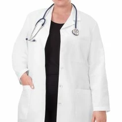 META lab coats are known for their impeccable construction and functionality. This ladies’ lab coat has side seam slits for easy pocket access. One-piece back, two-piece sleeves. Features two deep patch pockets, one chest pocket. Made of soil-release cotton/polyester poplin.