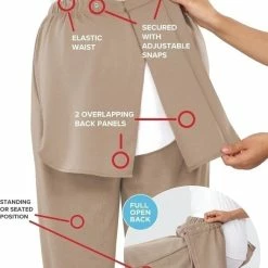 Overlapping back panels make these soft, stretchy adaptive ponte pants convenient for getting dressed from a wheelchair or seated position.