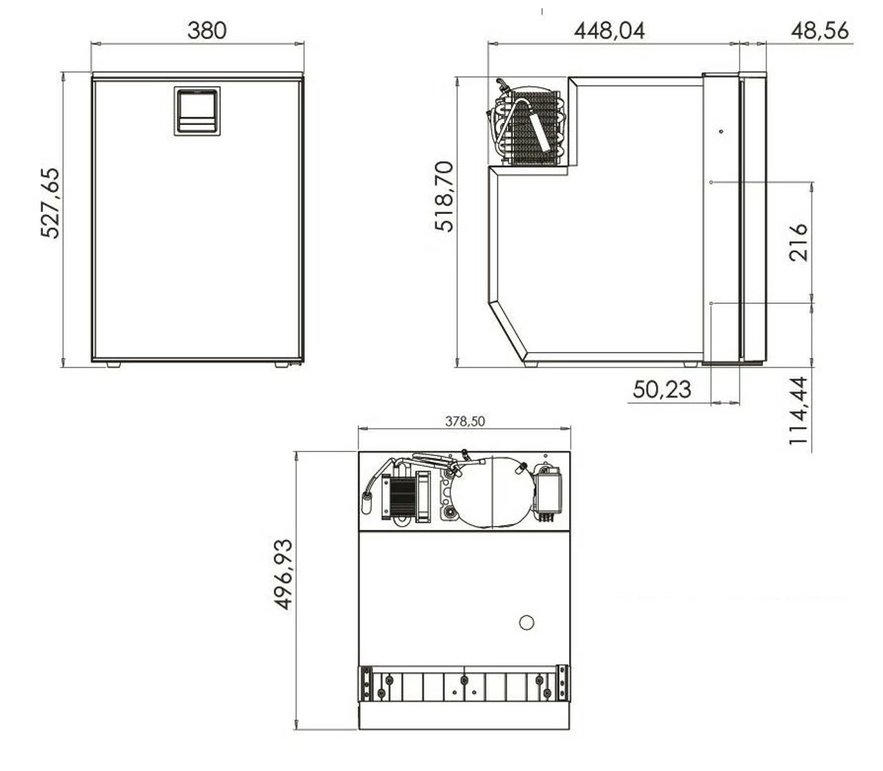 | Vitrifrico C51i Compressor fridge | 532mm | ย 380mm | ย 459mm (Flush 501mm) |