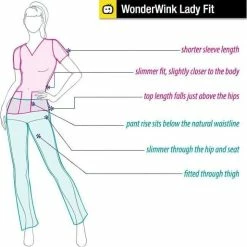 - Two front WonderWink signature scoop pockets, one with bonus mesh coin pocket, two exterior compartments, and bungee loop